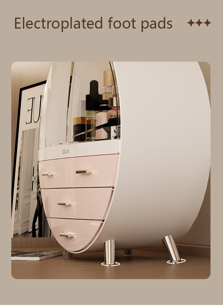 The Huamili Makeup Organizer is enhanced with electroplated foot pads, giving it a sturdy base and an elegant, elevated appearance. These foot pads not only prevent the organizer from slipping but also add a touch of luxury to its design, making it a standout piece for your vanity.