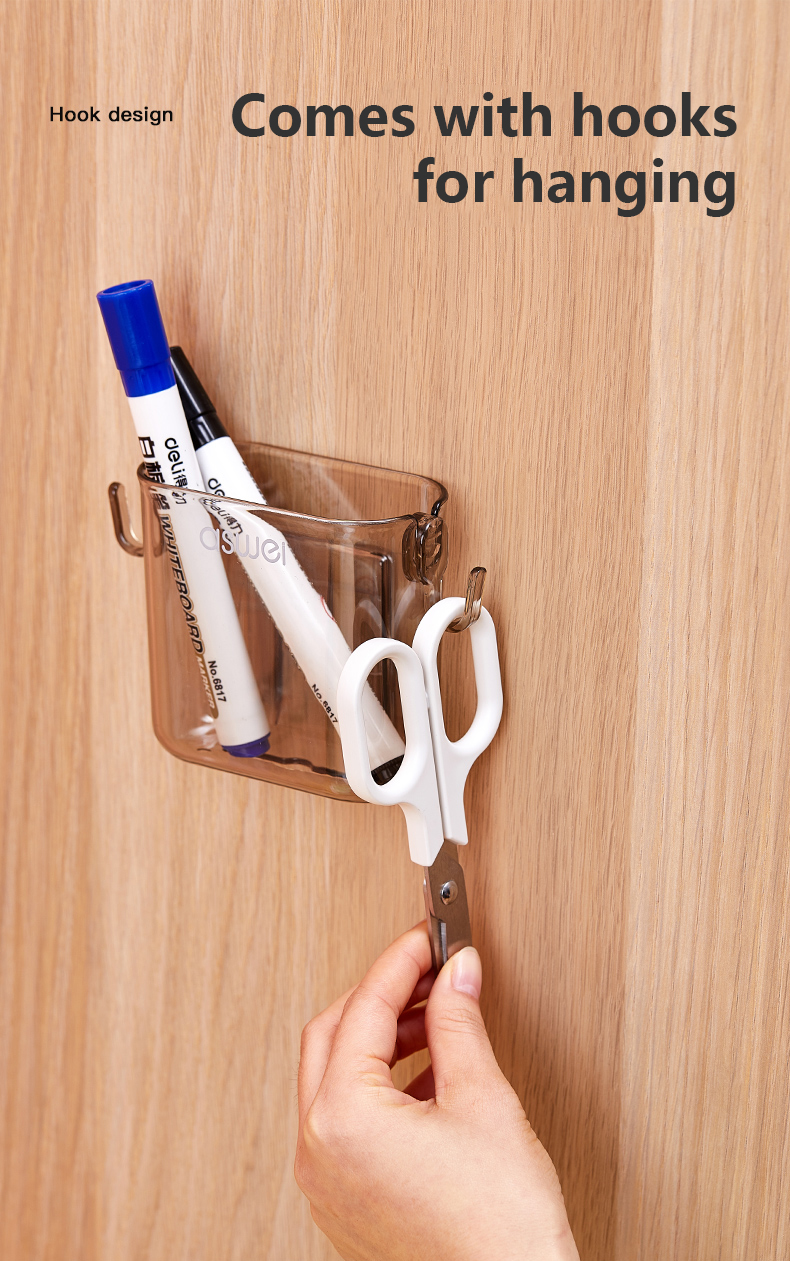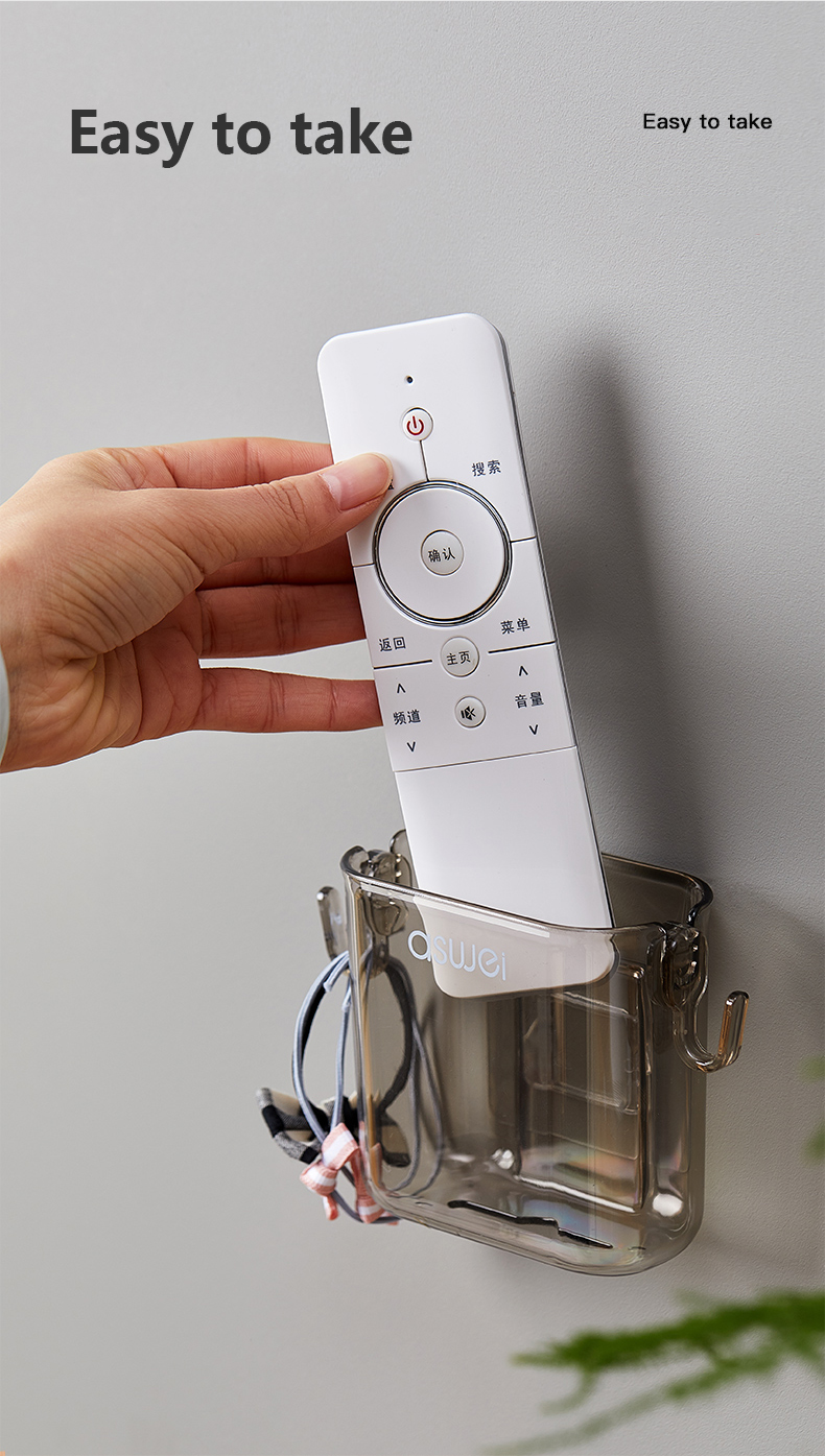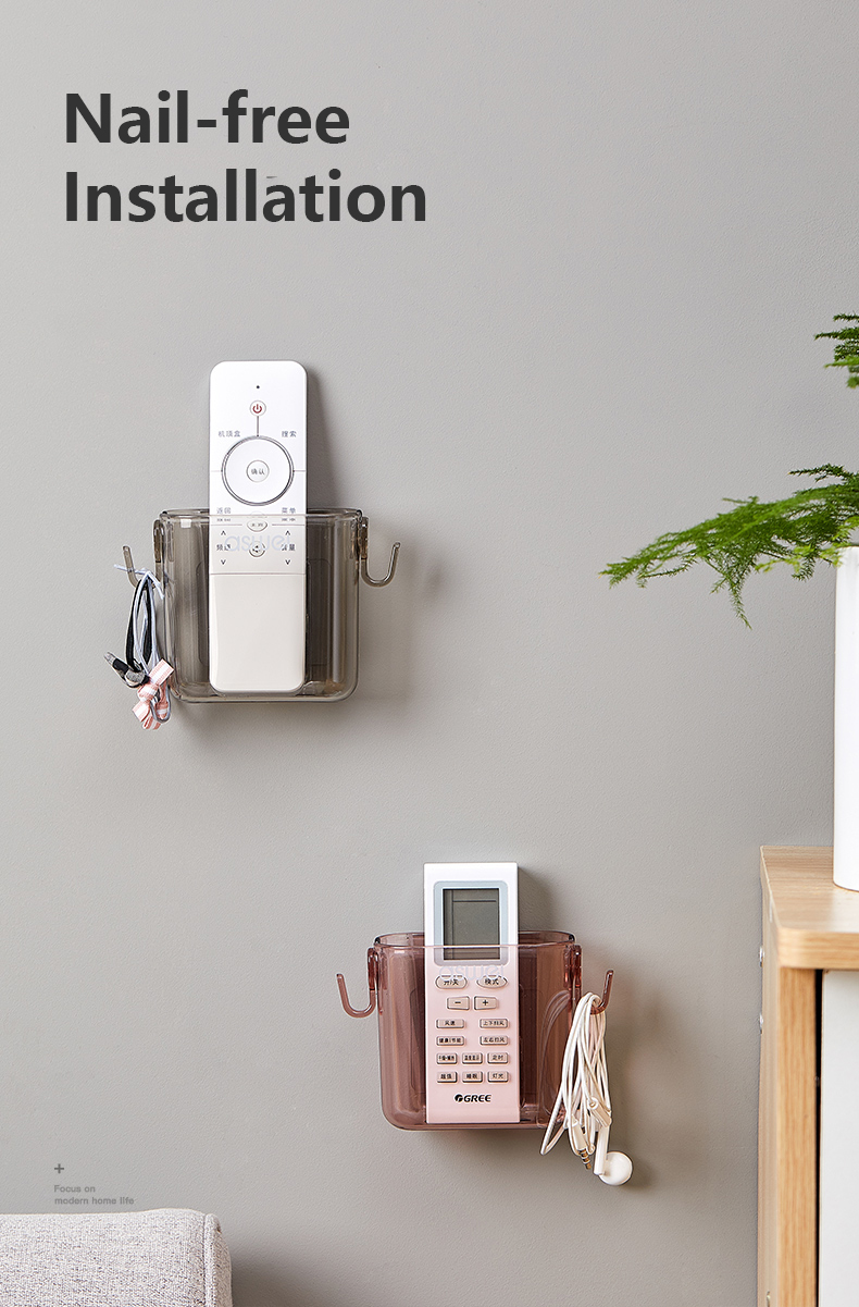 Space-Saving Wall-Mounted DesignDesigned to free up space and declutter your home, this storage box easily adheres to walls without requiring drilling. Ideal for bedrooms, living rooms, kitchens, and offices, it ensures that your remotes, phones, and other small items are always within reach.Durable & Eco-Friendly MaterialsCrafted from high-quality, eco-friendly materials, this storage box is sturdy, non-toxic, and sustainable. It is built to withstand daily use while promoting an eco-conscious lifestyle.Multi-Functional Storage SolutionThis versatile organizer is not just for remote controls – it also serves as a mobile phone holder, key organizer, or even a charging station. The additional hook feature provides extra hanging space for cables, earphones, or lightweight accessories.Hassle-Free Non-Perforated InstallationEquipped with strong adhesive backing, this storage unit ensures secure wall mounting without the need for nails or drilling. It is perfect for rented apartments, dorm rooms, or temporary setups.